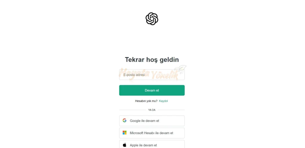 1. İlk olarak https://chat.openai.com web sitesine giriş yapıyoruz.