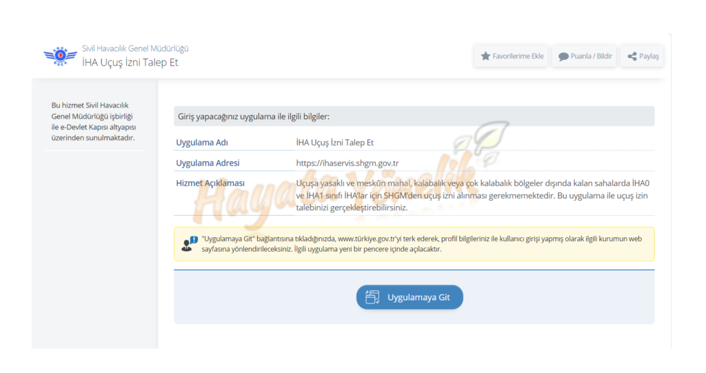 - “İHA Uçuş İzni Talep Et” seçeneğini tıklayın.